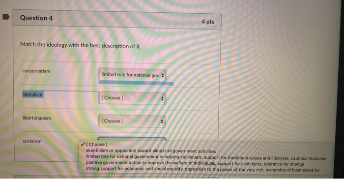 Solved Question 4 4 Pts Match The Ideology With The Best Chegg Com